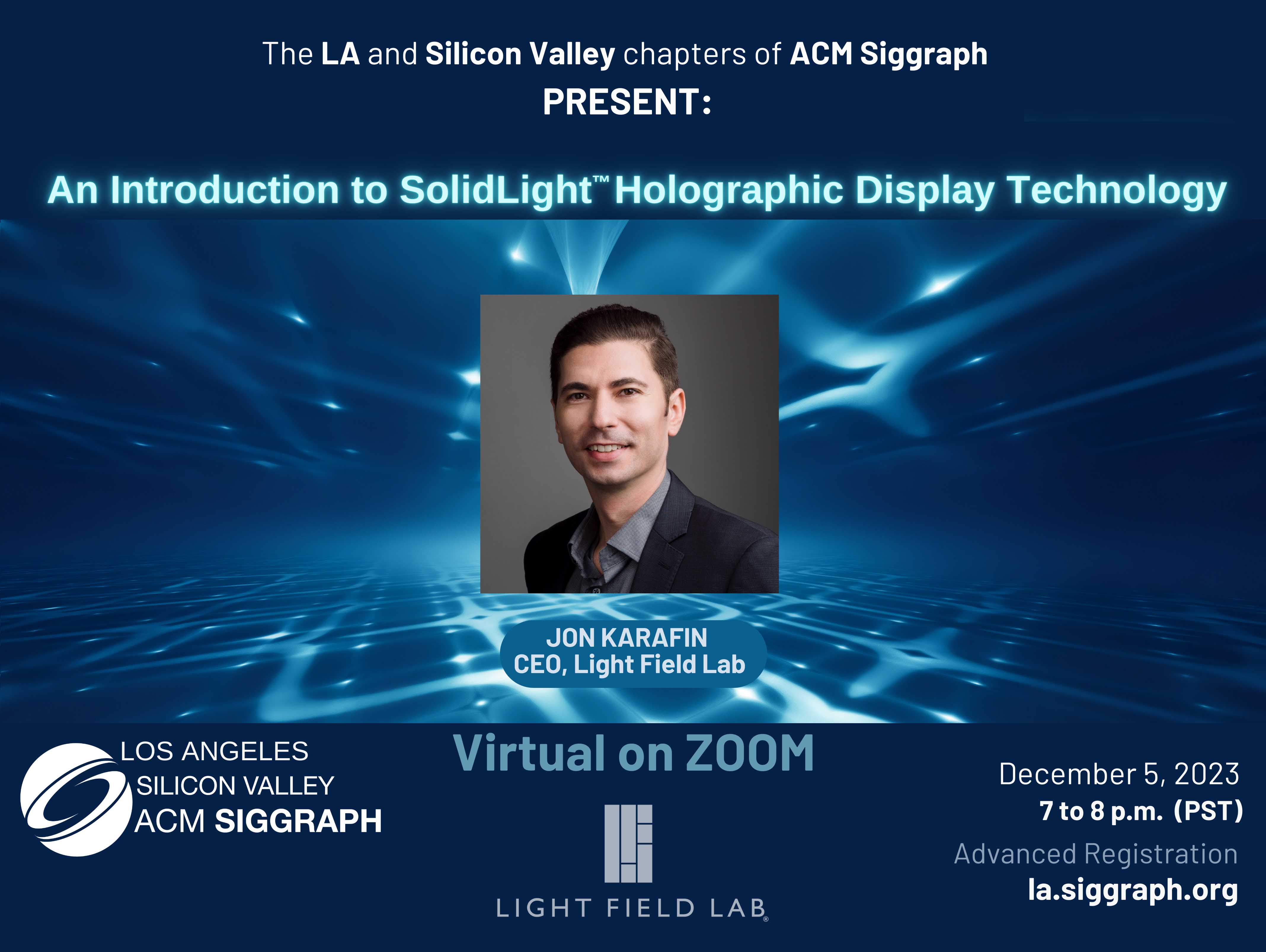 Speaker:  Jon KarafinCEO and Co-Founder, of Light Field Lab, Inc., will present the latest developments in Light Field Lab’s SolidLight holographic display technology, including insights into the creative and technical implications for content creation.