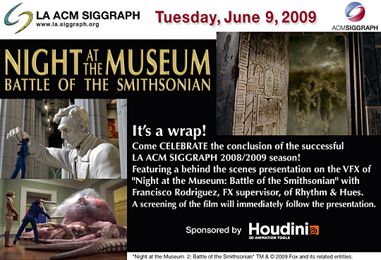 SideFX software, Leyla Tirgari, Keith Acheson, Rhythum & Hues, Scot Byrd, Francisco Rodriguez, Diane Piepol, Mar Sorrell, Leonard Daly, Sheriann KiSun Burnham, the LA ACM SIGGRAPH Executive Council and all our Volunteers.